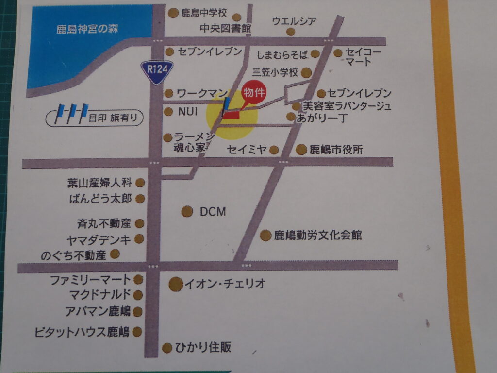 三笠小学校(700m) 鹿島中学校(1000m) 鹿嶋市役所(500m)、イオン・チェリオ(1000m)、DCM鹿嶋店(600m)、鹿嶋勤労会館(800m) |