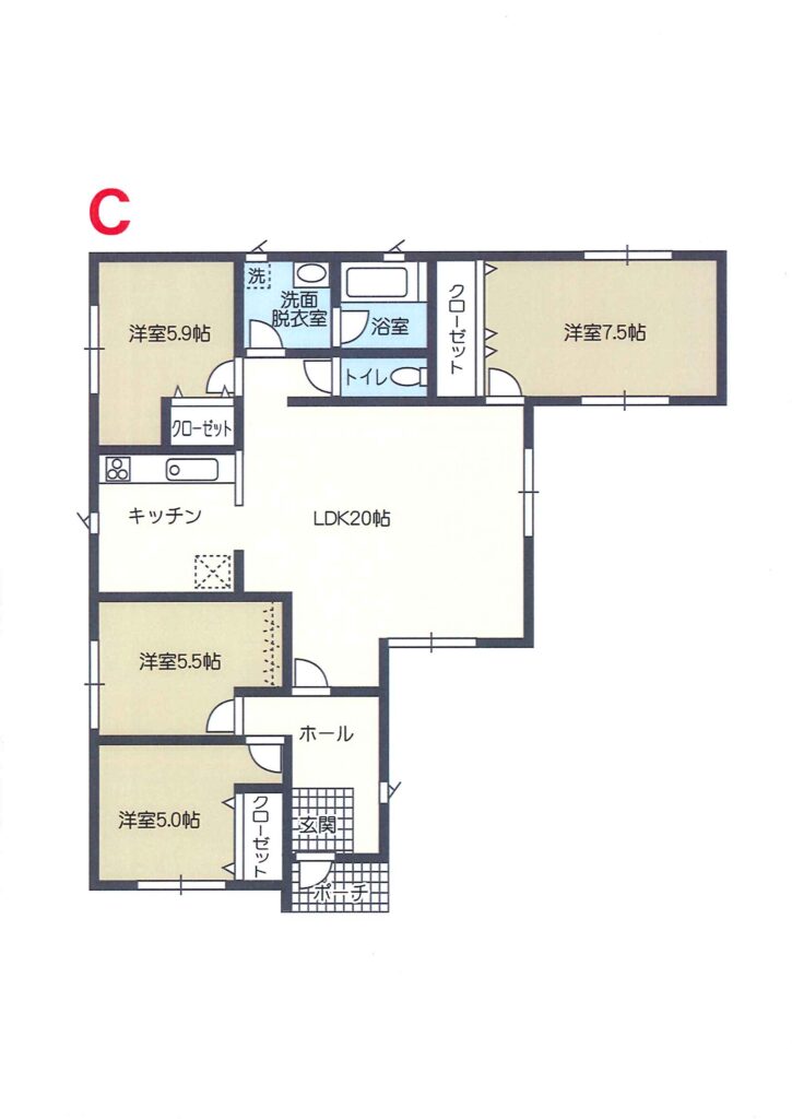 LDK 20畳 1階 洋室 7.5畳 1階 洋室 5.5畳 1階 洋室 5.3畳 1階 洋室 5畳 1階 |
