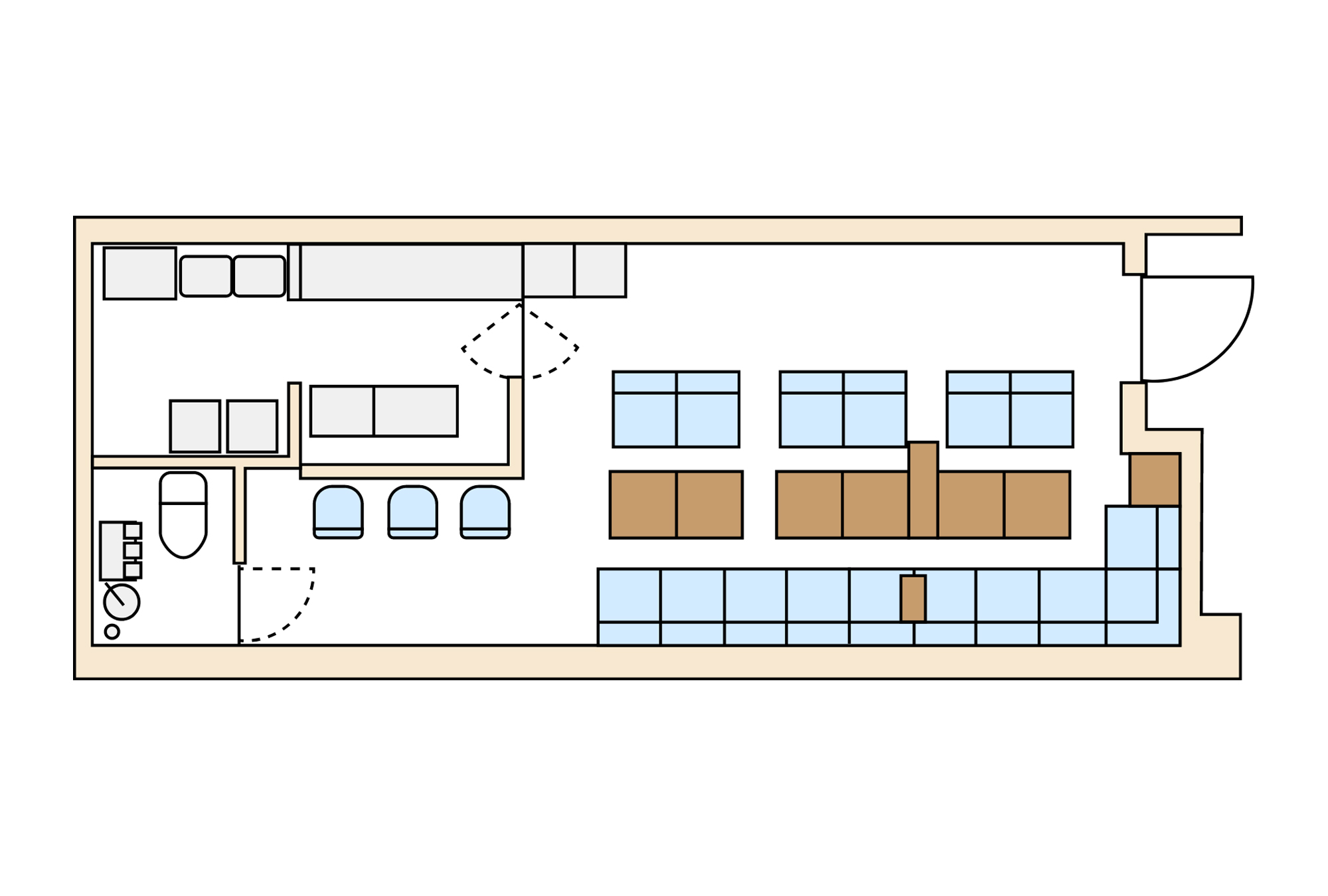 客席・カウンター・厨房・トイレ |