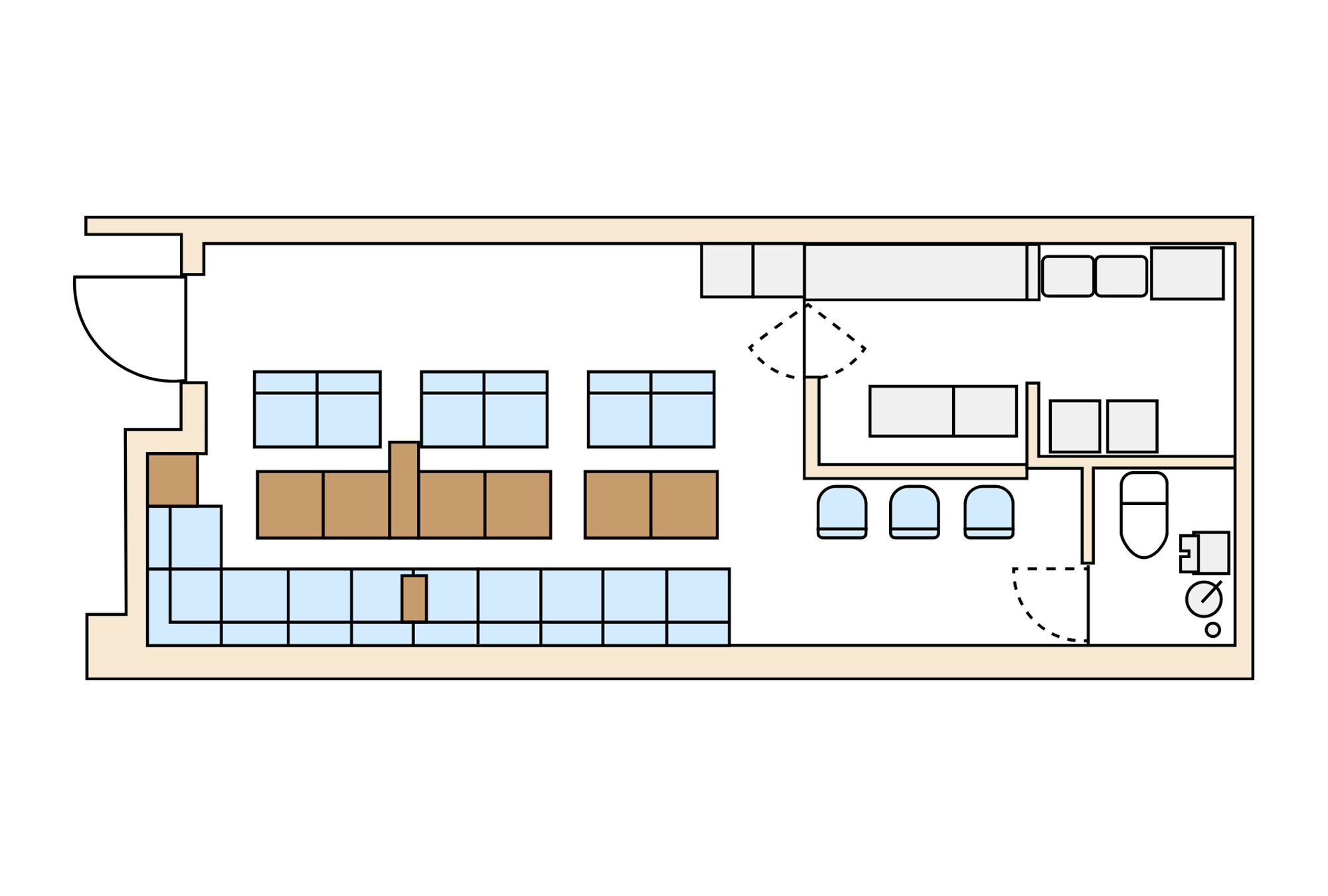 | 設備・条件 | 冷蔵庫 エアコン 駐車場有 家具・家電付 ボックス9席(ドミナ)+接客用6席=計15席、コーナー1席、スツール2席、カウンター3席、肘置×1、衝立×1、モニター42型3台32型1台、ハンガーラック |