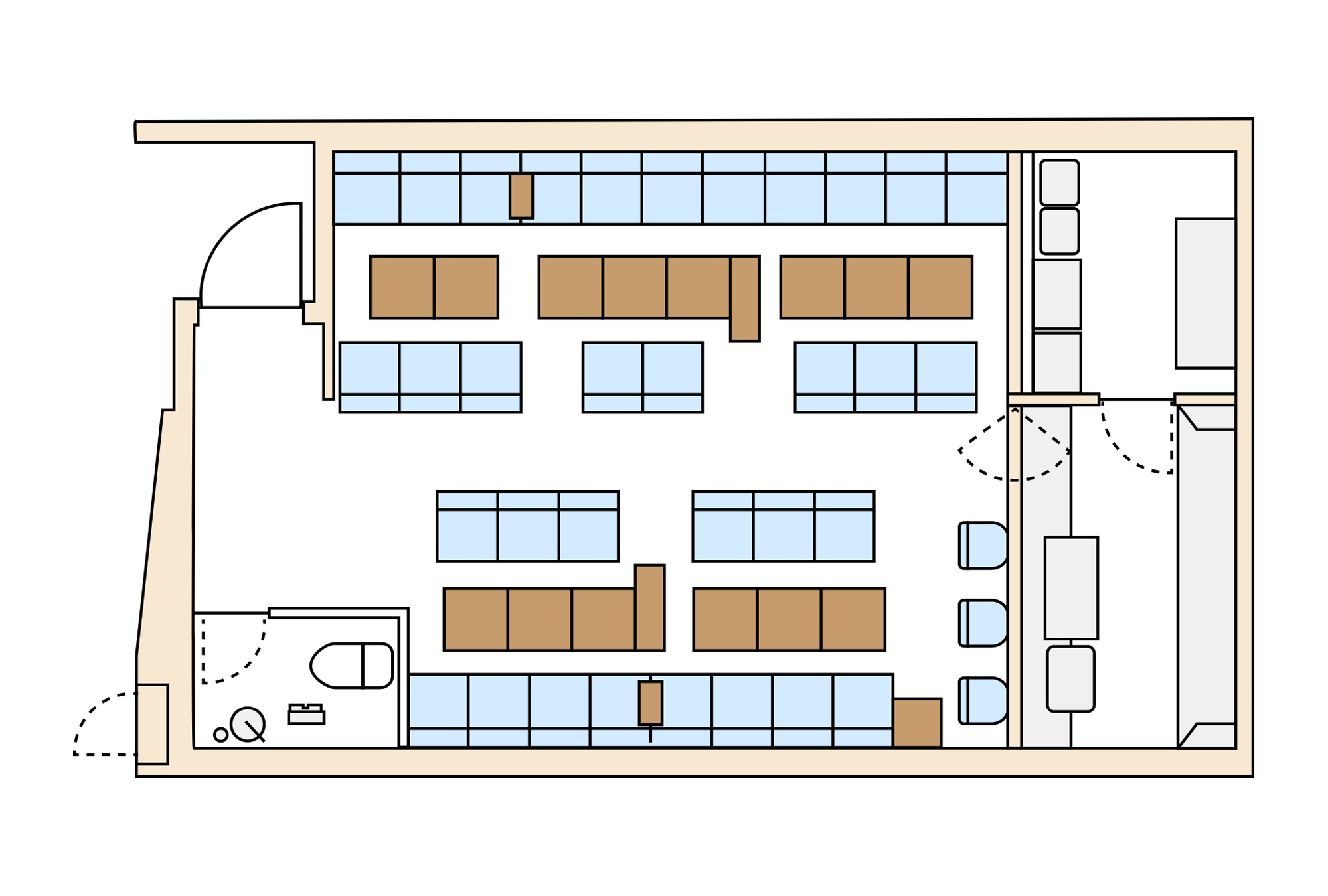 | 設備・条件 | エアコン 駐車場有 家具・家電付 ボックス19席(ドミナ)+接客用14席=計33席、コーナー0席、スツール2席、カウンター3席、肘置×3、衝立×2、モニター42型3台32型1台、ハンガーラック |
