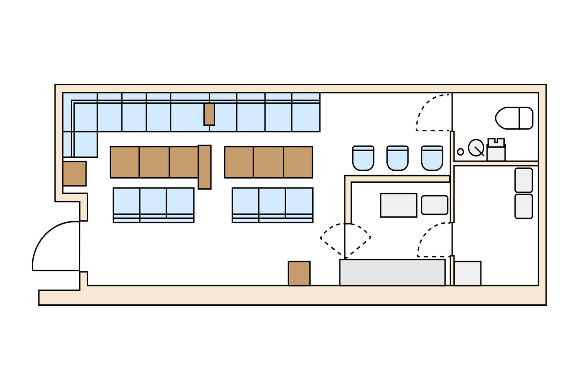 客席・カウンター・厨房・トイレ