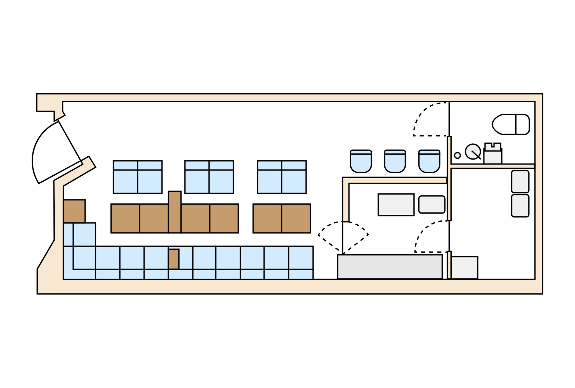 客席・カウンター・厨房・トイレ